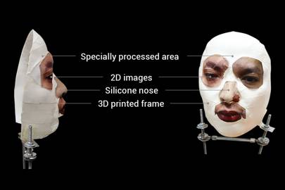In the video posted to YouTube, shown above, one of the company's staff pulls a piece of cloth from a mounted mask facing an iPhone X on a stand, and the phone instantly unlocks. Despite the phone's sophisticated 3-D infrared mapping of its owner's face and AI-driven modeling, the researchers say they were able to achieve that spoofing with a relatively basic mask: little more than a sculpted silicone nose, some two-dimensional eyes and lips printed on paper, all mounted on a 3-D-printed plastic frame made from a digital scan of the would-be victim's face.